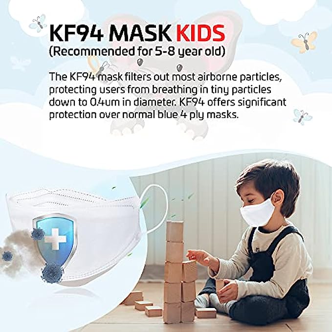 • ✅ BEST KIDS PROTECTION – This Extra Small KF94 disposable face mask is made with high quality MB fabric that is effective. Made with a triple-layered electrostatic filtration system, this product will filter at least 94% of PM2.5 to protect the wearer from exposure to harmful dust. This children's mask is very effective in protecting from dust, air pollution, and more. Protect your children’s health with these disposable face masks for kids.