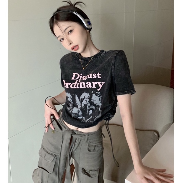 【羊城故事】100%純棉 T恤 短袖上衣 水洗做舊 美式復古上衣 oversize 設計感上衣 短袖 扎染 夏天衣服