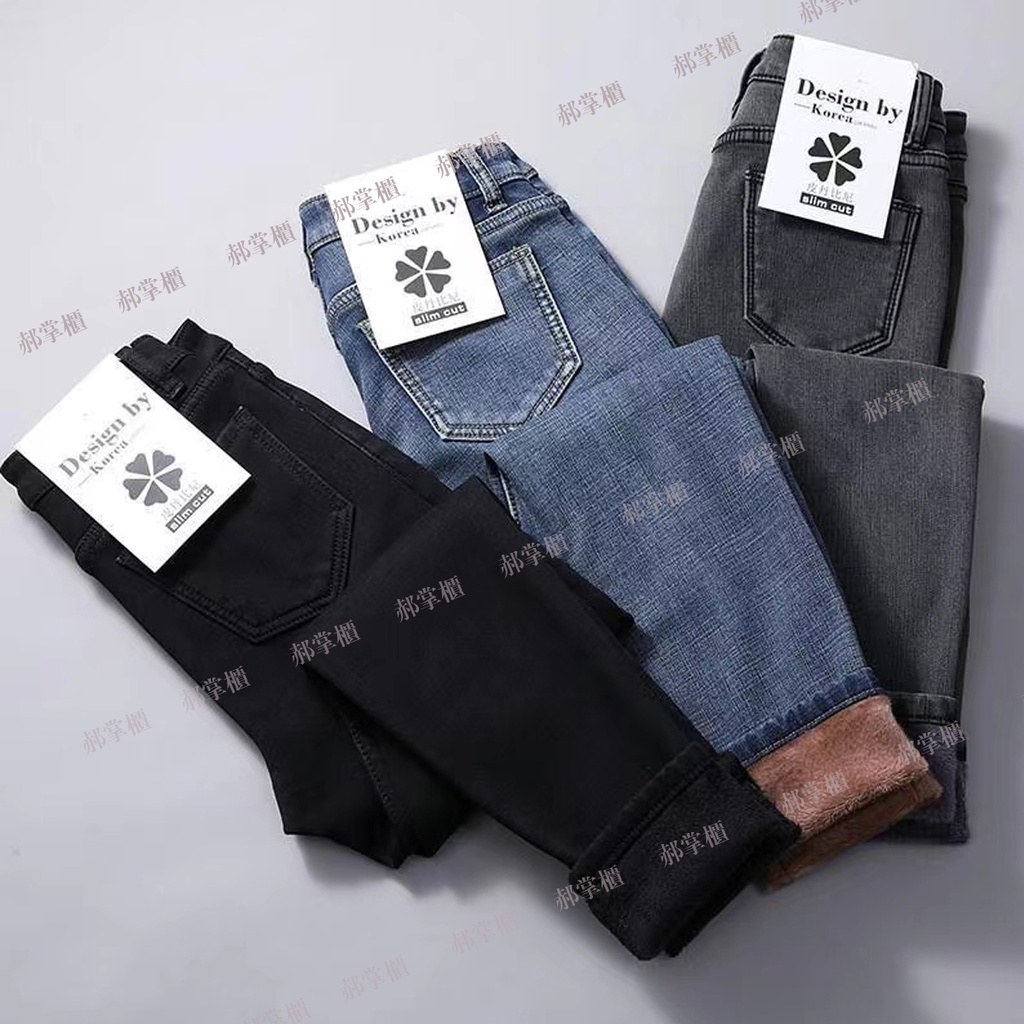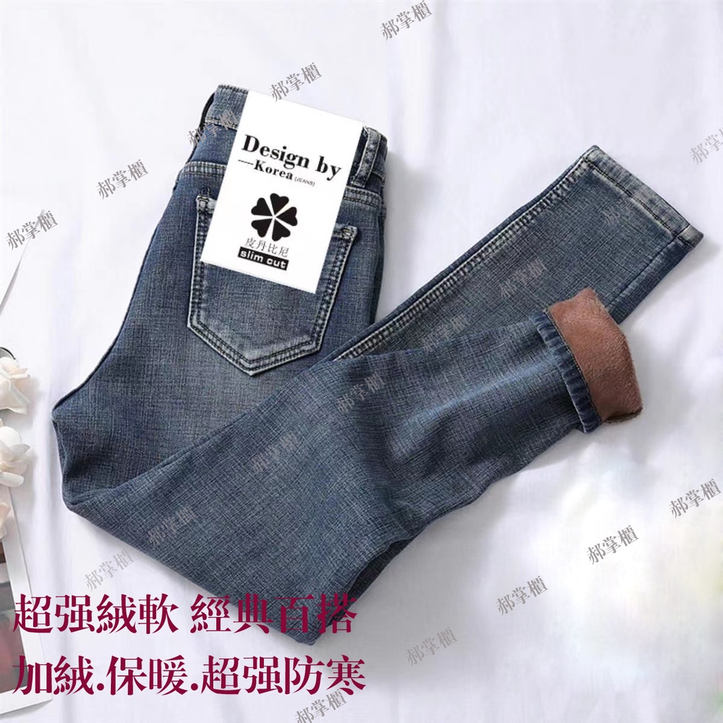 現貨 韓版牛仔長褲 【加絨/單褲】日系女牛仔褲 加絨牛仔褲 刷毛褲 防寒褲 大呎碼牛仔長褲 刷毛牛仔褲 彈力牛仔褲