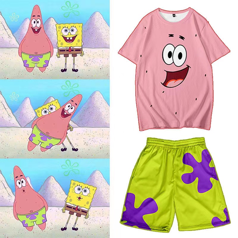 網紅爆款?派大星同款短褲 T恤 短袖 沙灘褲 潮流花褲衩 五分休閒褲 短褲 派大星 海綿寶寶同款 開學做酷酷的派大星