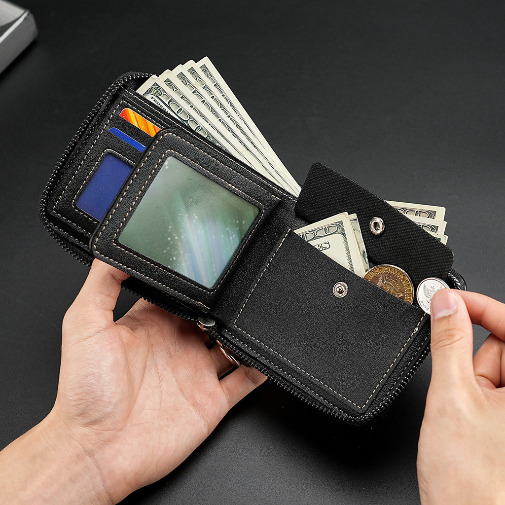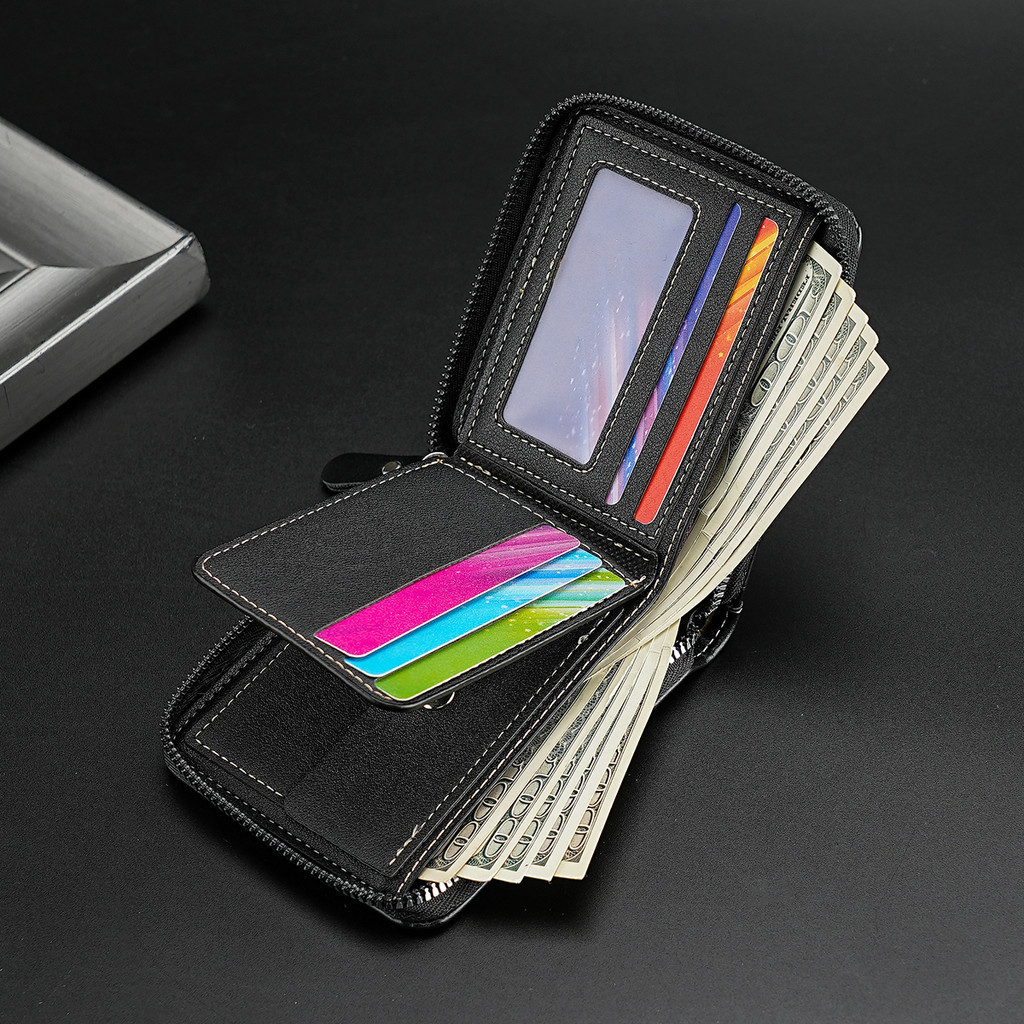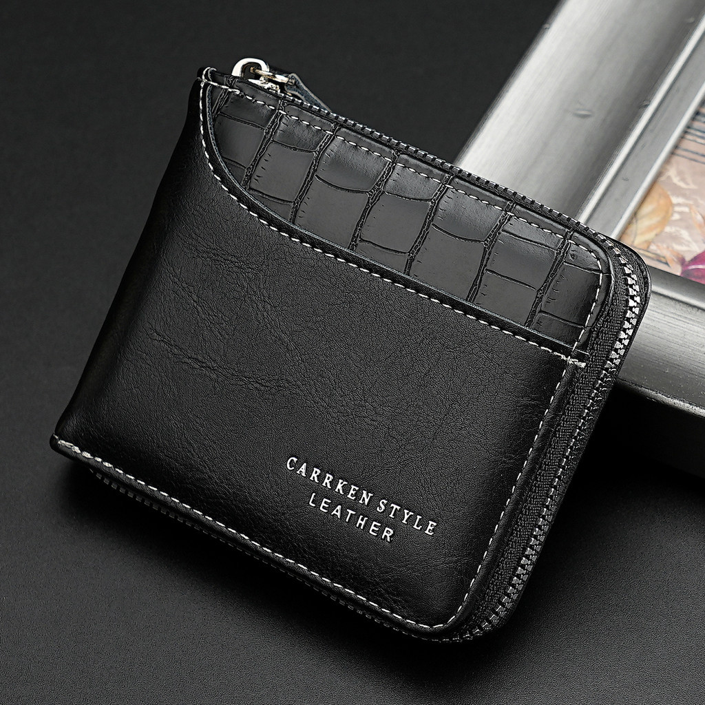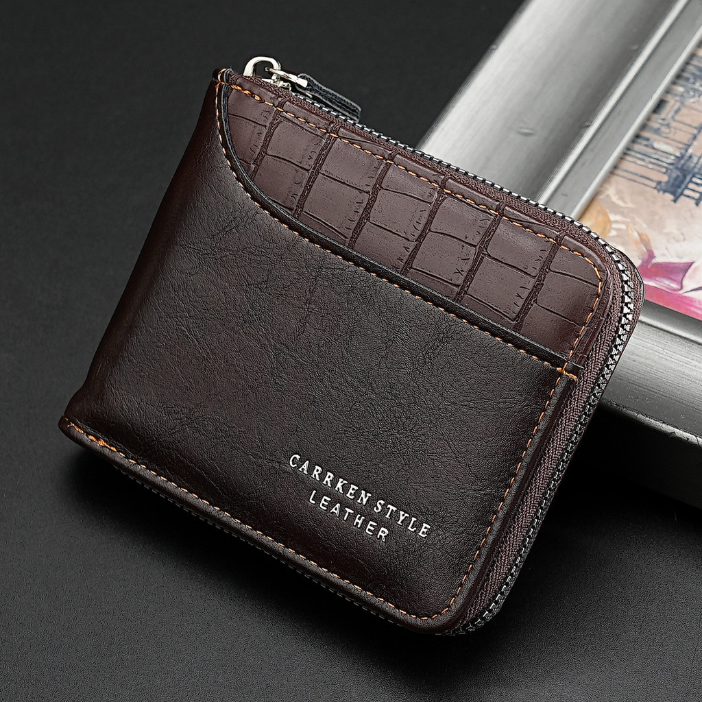 1 Retro Stitching Stone Pattern Zipper Short Wallet Youth Fashion Multifunctional Wallet Bi-Fold Credit Card Coin Purse Men's Gift