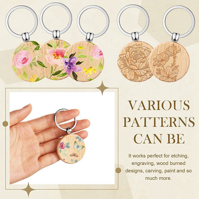 100 Pieces Wooden Keychain Blanks Round Wood Keychain Blanks Unfinished Wooden Key Ring Key Tag B