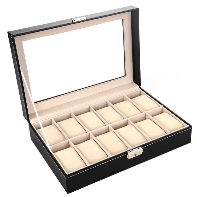 12 Slots Glass Top PVC Watch Box Storage Case Jewelry Case Display Box Watch Case isplay Organizer Boxes / Sunglass Storage / Watch Travel Pouch