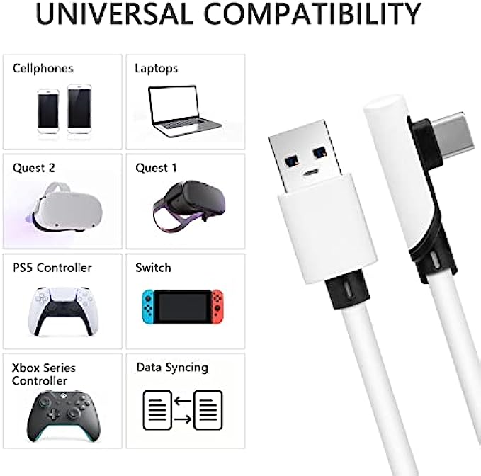 ✅【90 Degree Angle & Lightweight】The USB C cable is designed with an innovative 90 degree L connector and comes with additional velcro strap , so it is easy to insert into your Oculus USB C port, and effectively prevents disconnecting during gaming, you can completely immerse yourself into the virtual VR Gaming world.