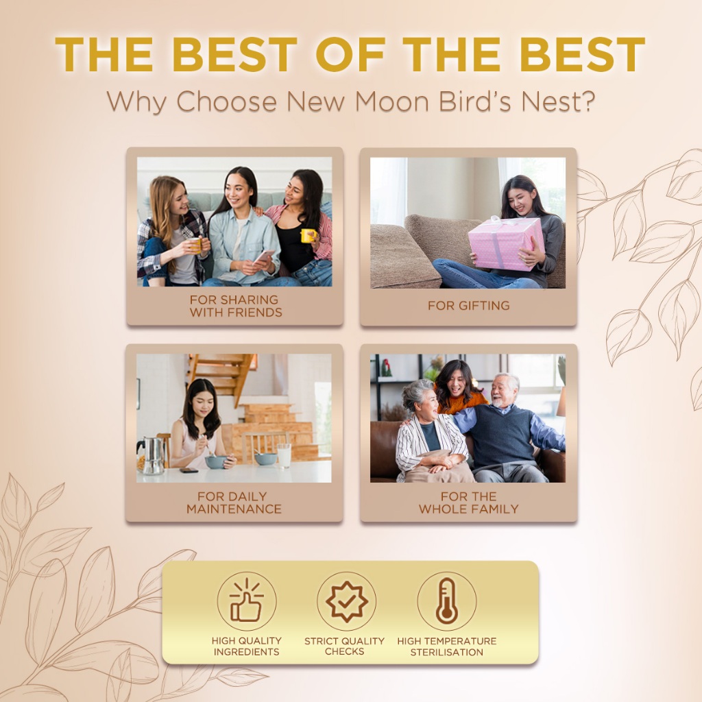 Suitability:Suitable for young to old Performance:great as a daily/weekly supplement Bought during the sale and the discount is very attractive. Comes with free gift too. Have tried other brands of bird's nest, but still prefer the new moon's taste. Delivery is very fast too. Arrived within 2 days.