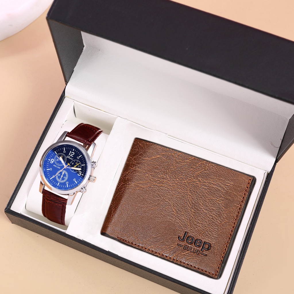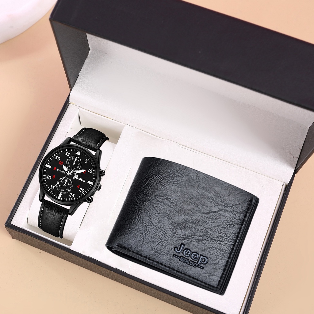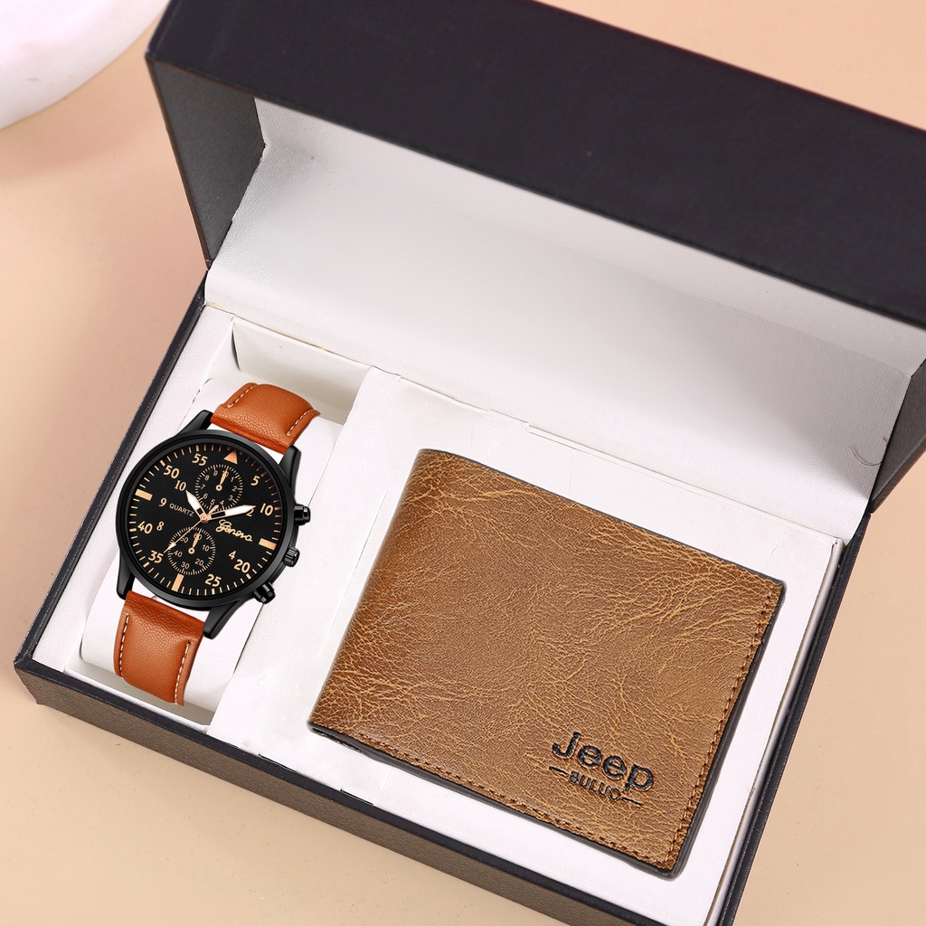 2PCS Men Watch Wallet Set Business Multi Color Round Dial PU Leather Strap Quartz Watches Exquisite Wallet NOBOX