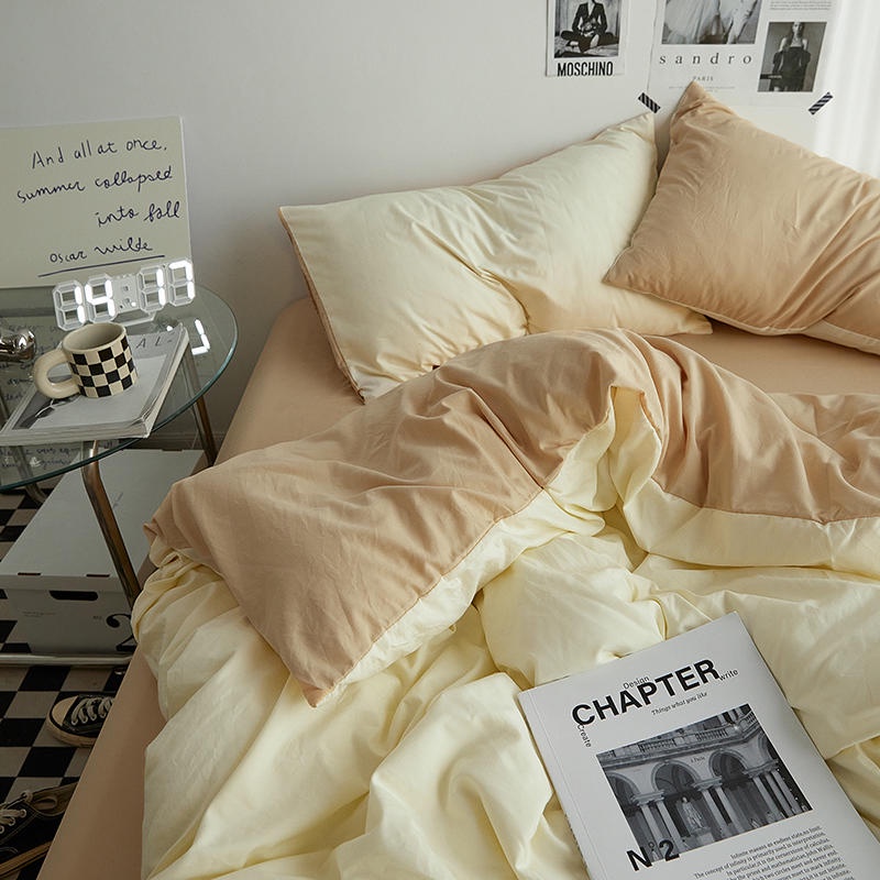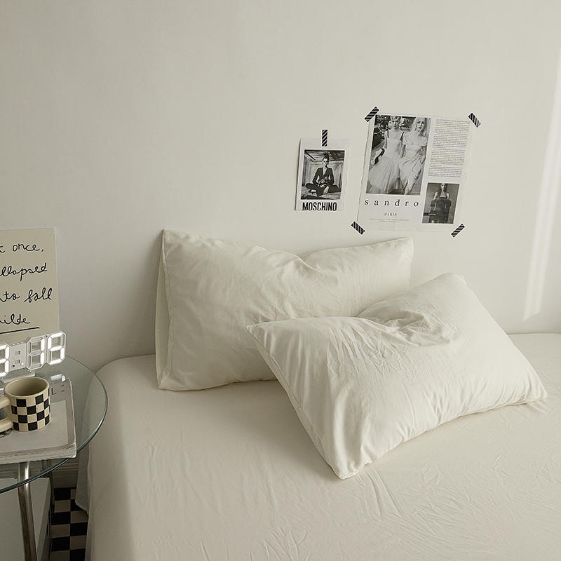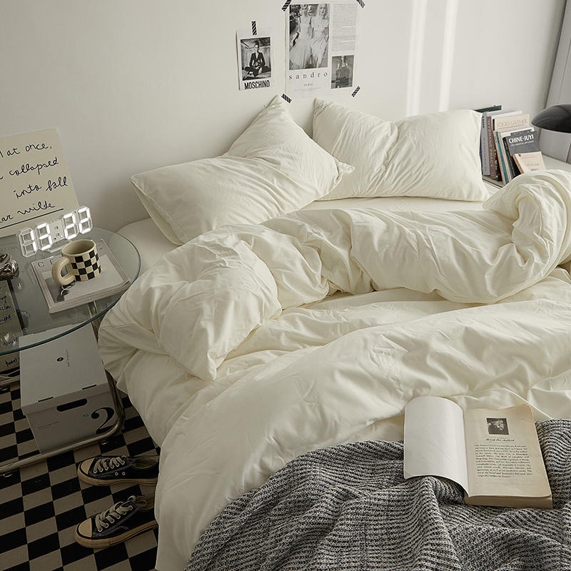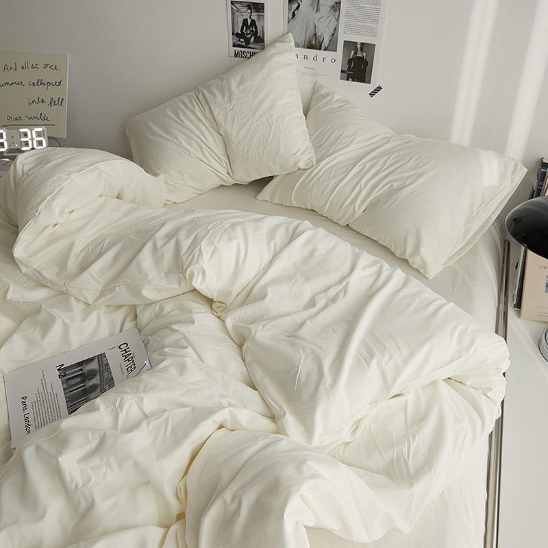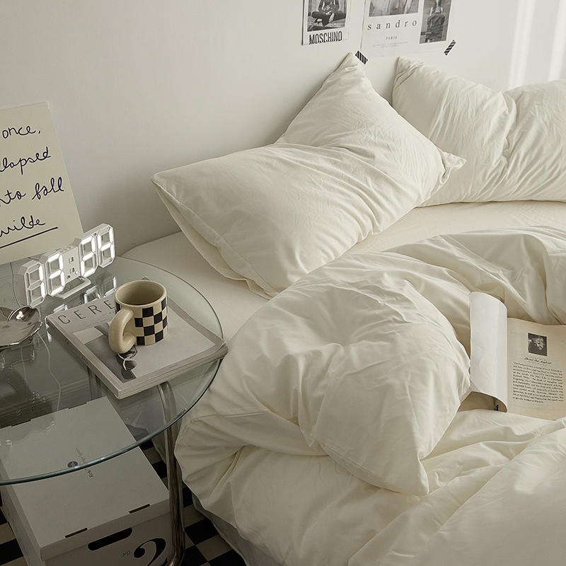 4 IN 1 Bed Sheet Set Queen King Size Milky White Color Bed Sheet Set Plain Dyed Bedding Set Single/Queen/King Size Quilt Cover Fitted Sheet/Fitted Sheet Pillowcase