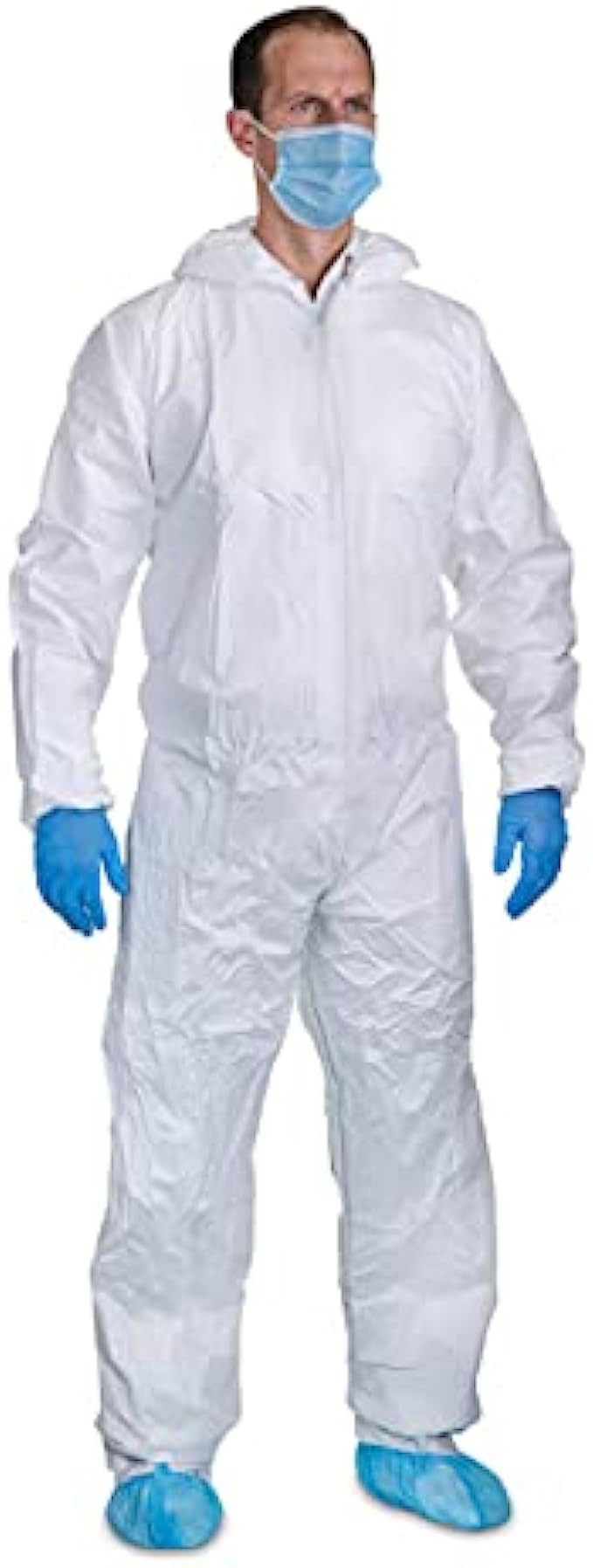 Provides full body protection. With elastic hood, elastic wrists and elastic ankles, the coveralls provide a snug fit, and reliable protection from harmful particles.