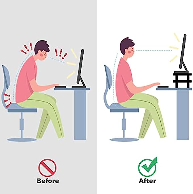 ☝PERFECT EYE LEVEL - A sturdy desk monitor riser lifts your computer screen to perfect eye level at work in home office and really reduce a lot of neck strain for you being at the computer all day. The legs are easy to take off or put on to adjust height of the desktop monitor stand.