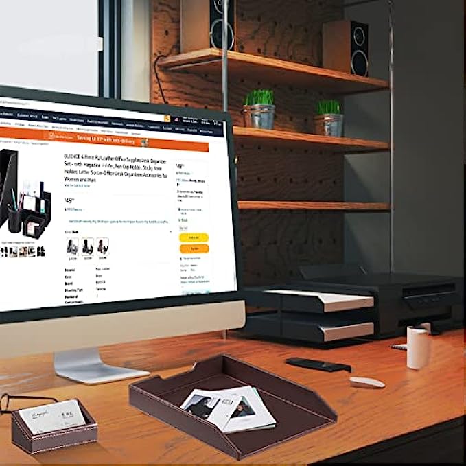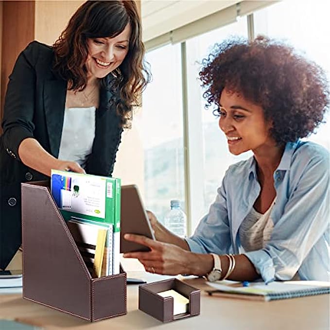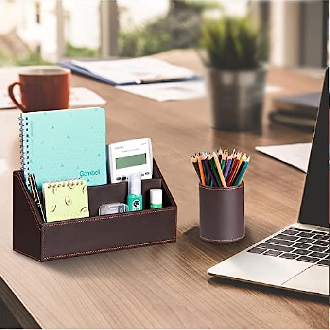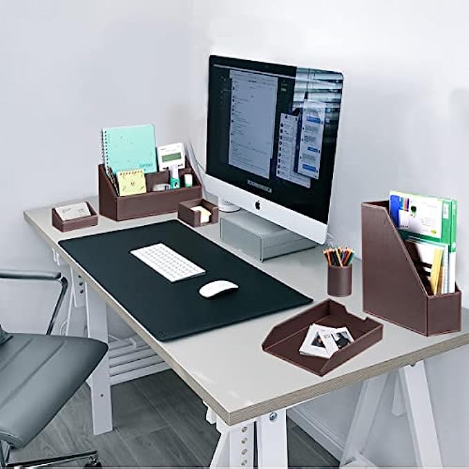 【6 Piece Office Supplies Desk Accessories Set】1*Paper/ Document Tray, 1*Magazine Holder, 1*Mail Sorter, 1*Pen Cup, 1*Sticky Note Holder , 1* Business Card Holder. Whether you seek desk accessories for men office or desk decorations for men office, This 6 piece set of desk accessories & workspace organizers has everything you need. fits your office theme perfectly.