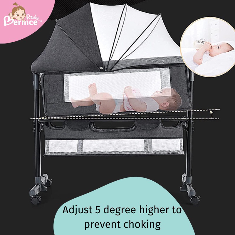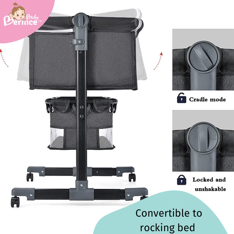Adjustable Rocking Cot/Side Bed with wheels L 90cm W 58-68cm H 80cm Inner cot size L 87cm W 50 cm Depth 32cm