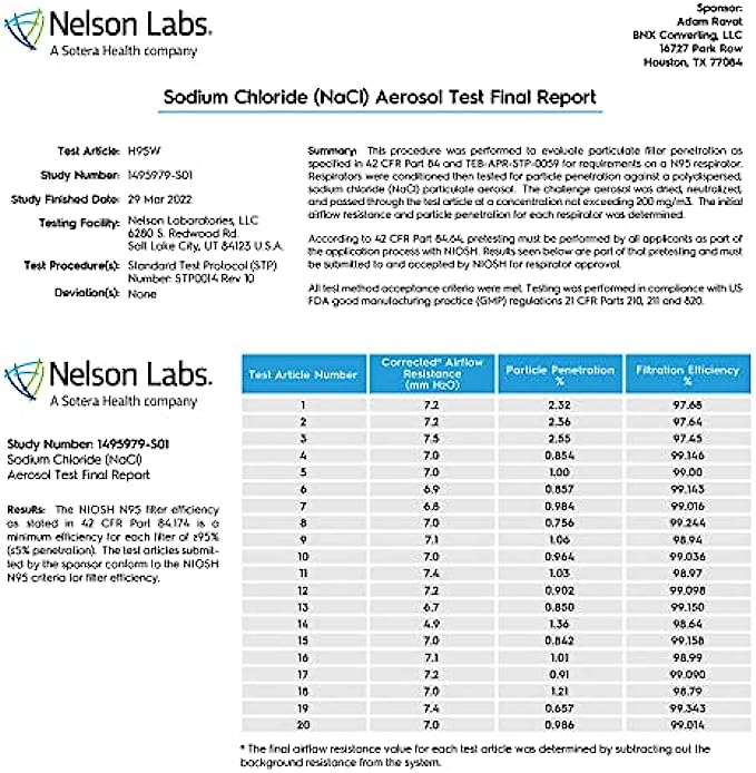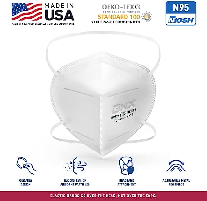 MADE IN USA* – Manufactured by BNX Converting LLC in Houston TX, a NIOSH/CDC Approved and Registered (Registration # 3017489417) manufacturer of N95 mask respirators. *Manufactured in the USA from globally sourced components.