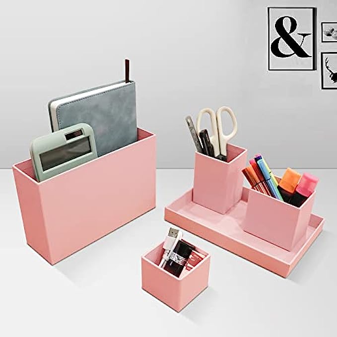 ? MULTI FUNCTIONAL DESK STORAGE : The desk organizer will keep the stuff you need at hand while staying out of your way. You can place the desk organizer in your office, home, school, dressing desk for pens , notebooks, remote control, scissors, brushes, cosmetics and all in one design.