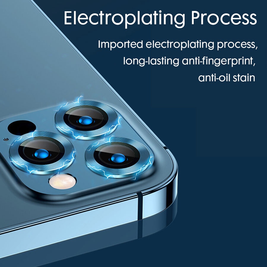 For iPhone 11 12 13 14 Pro Max / 14 Plus Rear Camera Lens Metal Protector Ring With Tempered Glass