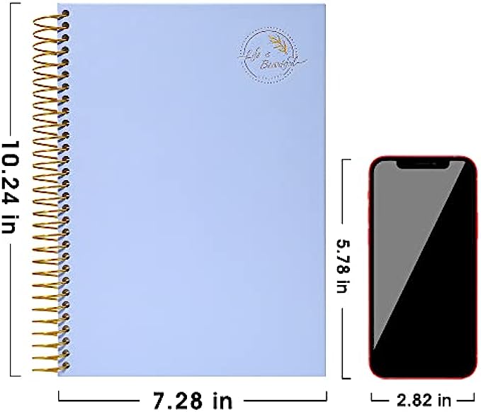 HARDCOVER JOURNAL--- The college ruled journal is 10.24 Inch X 7.28 Inch(Not including spirals) Some people believe that “No design is the best design” ,the simple pink cover and the gold spiral make the notebook simple and good-looking.