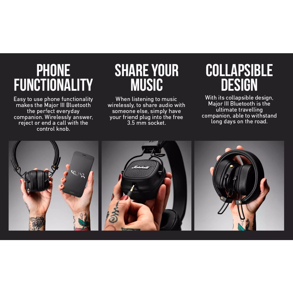 Marshall Major 3 III Wireless Bluetooth On Ear Headphones with Mic Headset Deep Bass Headsets