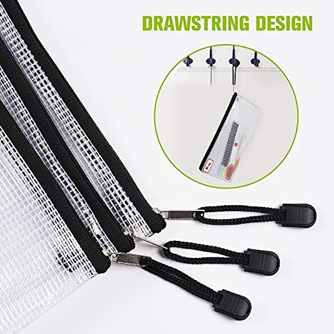 【Fine Manufacturing Process】The joint of zipper mesh bag is stable and not easy to tear or damage. The string on the zipper can be used for hanging. It is convenient and fast to use, and easy to carry. Use the zipper pouch to store items and simply take it away with a slight lift.