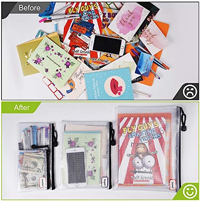 【Wide Application】Can be used as a perfect gift for company employee, students, teachers, travelers and people who need it. What's more, perfect for store office supplies, like papers, envelopes, board game, puzzles etc. also can use in home, travel and organizing. But, NOT suggest some shape objects, like scissors, etc. which will pierce the zipper bags.