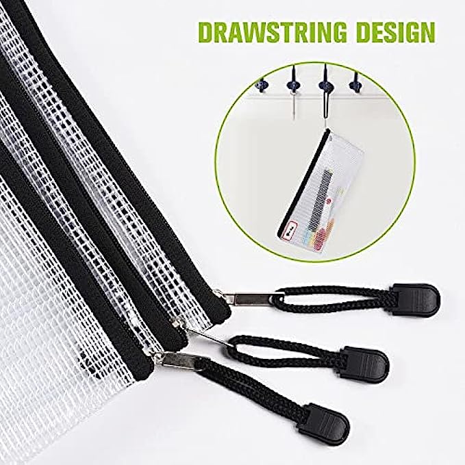 【Fine Manufacturing Process】The joint of zipper mesh bag is stable and not easy to tear or damage. The string on the zipper can be used for hanging. It is convenient and fast to use, and easy to carry. Use the zipper pouch to store items and simply take it away with a slight lift.