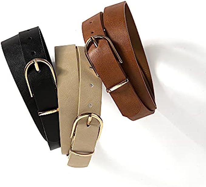 • [ All-Match On Trend Style] From timeless black to brown beige or white with gold buckle this belt has the look to match with any of your daily outfits, adjust it to your preference to wear on waist or hips