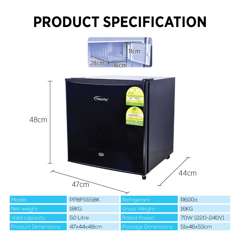 PowerPac Bar Fridge 50L / Mini Fridge with Lock-PPBF555A