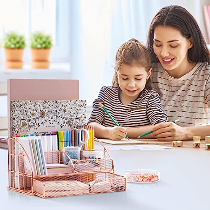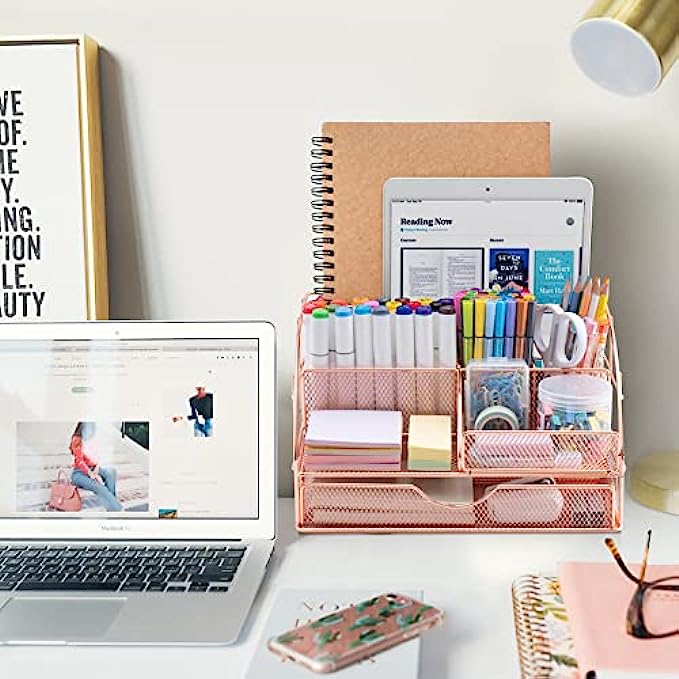 UNIQUE & STYLISH: Mesh desktop organizer is made of high-quality metal with a durable rust-resistant plating finish. The combination of wire mesh and rose gold, with enhanced metal rims and stylish appearance is what makes your desk stand out! If you want to add some classy,feminine touches on your workspace, the Rose Gold product fits the bill nicely.