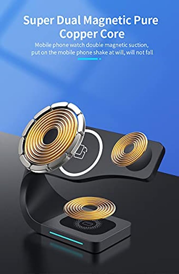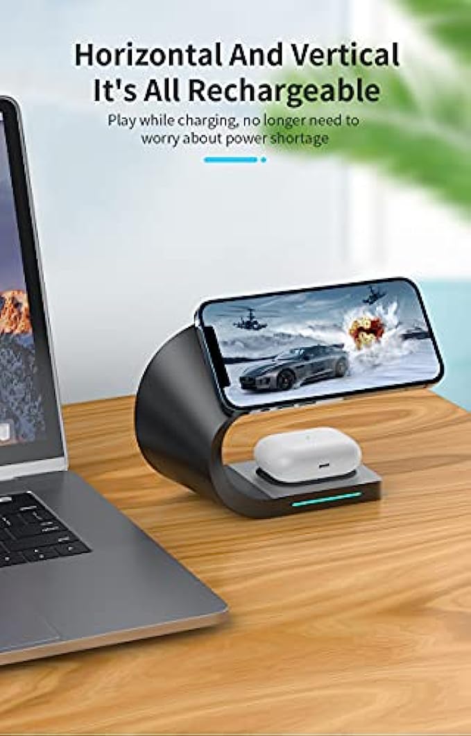 【Neat Desktop&Protection Equipment】 Wireless charging station only needs a cable to charge.It keeps your desk tidy and clean,which reflected the sense of high-tech.Wireless charging stand reduced the friction of USB or Lightning ports. Phone charging station is covered with a soft material,which can protect your device from accidental scratches.Phone and watch charging station base adopts non-slip mat design,prevents the devices from easily sliding off.