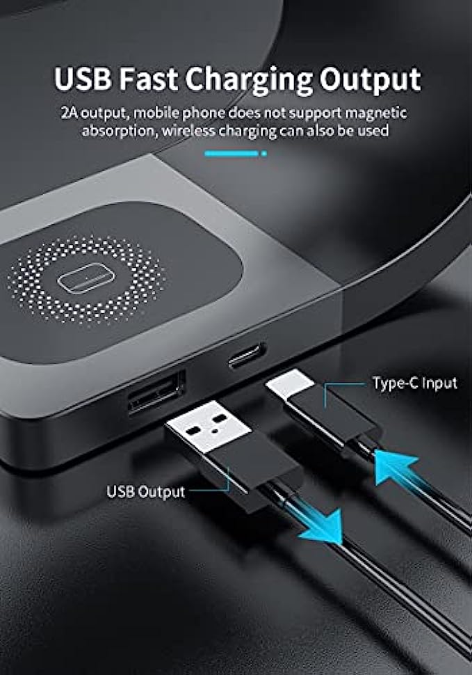 【STRONG MAGNETIC ALIGNMENT】Built-in powerful magnets can firmly fix the phone on the wireless charging stand and automatically align the charging area to provide efficient charging.Besides, you can charge your phone in any orientation,so you can watch movies or video in landscape and make calls or send a message in portrait without interruption during the whole charging process.