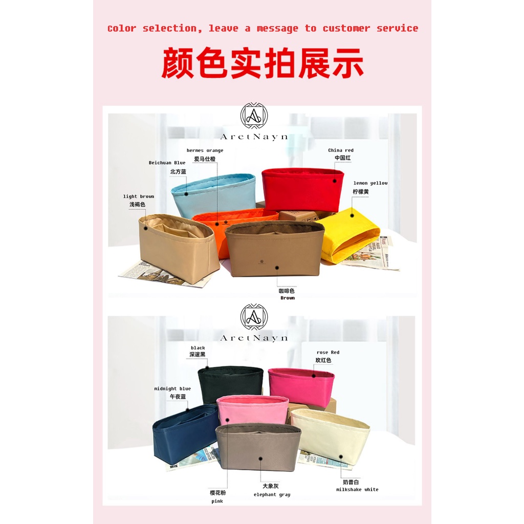 Soft and light bag organizer insert fit for Hermes Evelyne bag in bag mini Evelyne16 29 33 liner bag nylon lining bag insert organiser /aretnayn