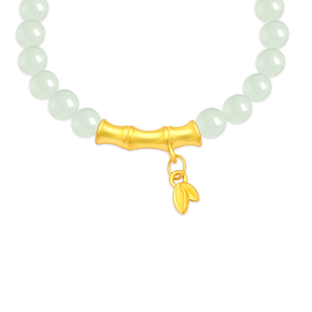 TAKA Jewellery 999 Pure Gold Bamboo Charm with Beads Bracelet