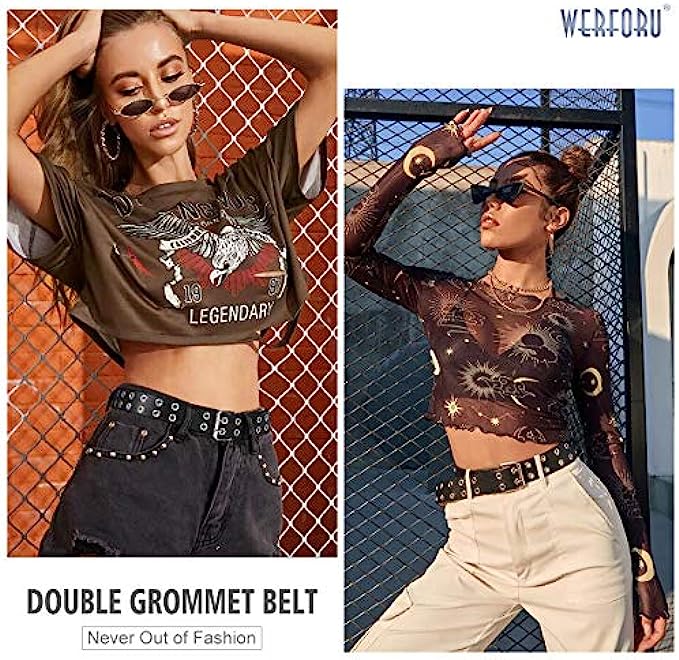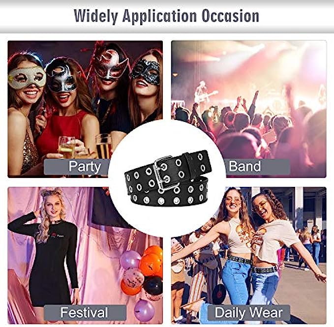 • ?Perfect Women Belts for Any Occasions: The double grommet belt is perfect for any jeans,pants,dresses with 2 rows of grommets, rather punk rock & cute look for men or women. The studded design is suitable for both daily use and costume parties, a great gift women belt for Halloween,Christmas,Mother’s day, cosplay and other activity.