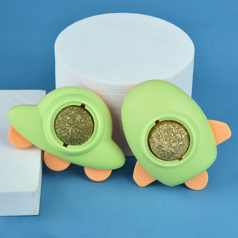 Catnip Ball Cat Airplane Toy Self-healing Boredom Relieving Stick Wall Teasing Cat UFO Toy