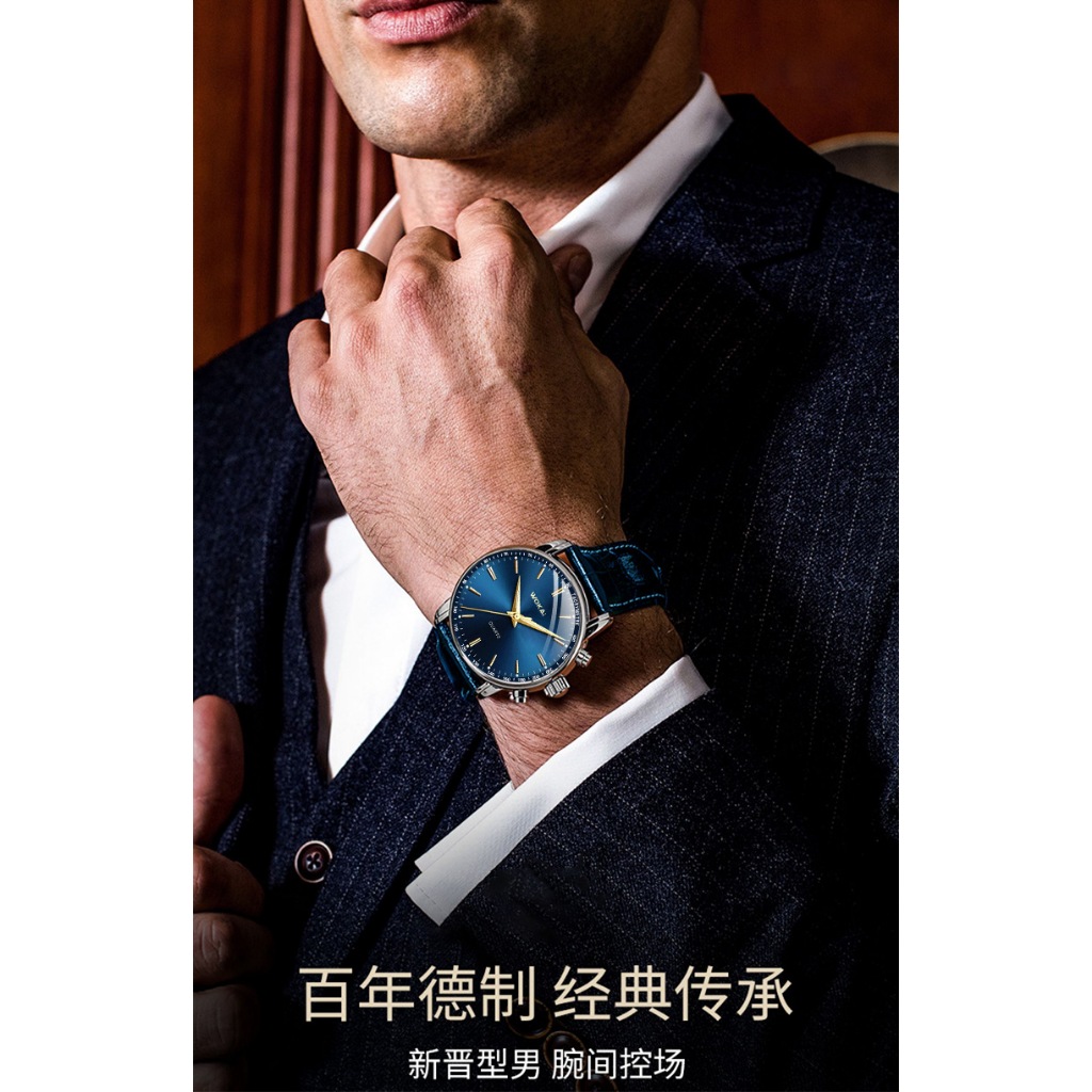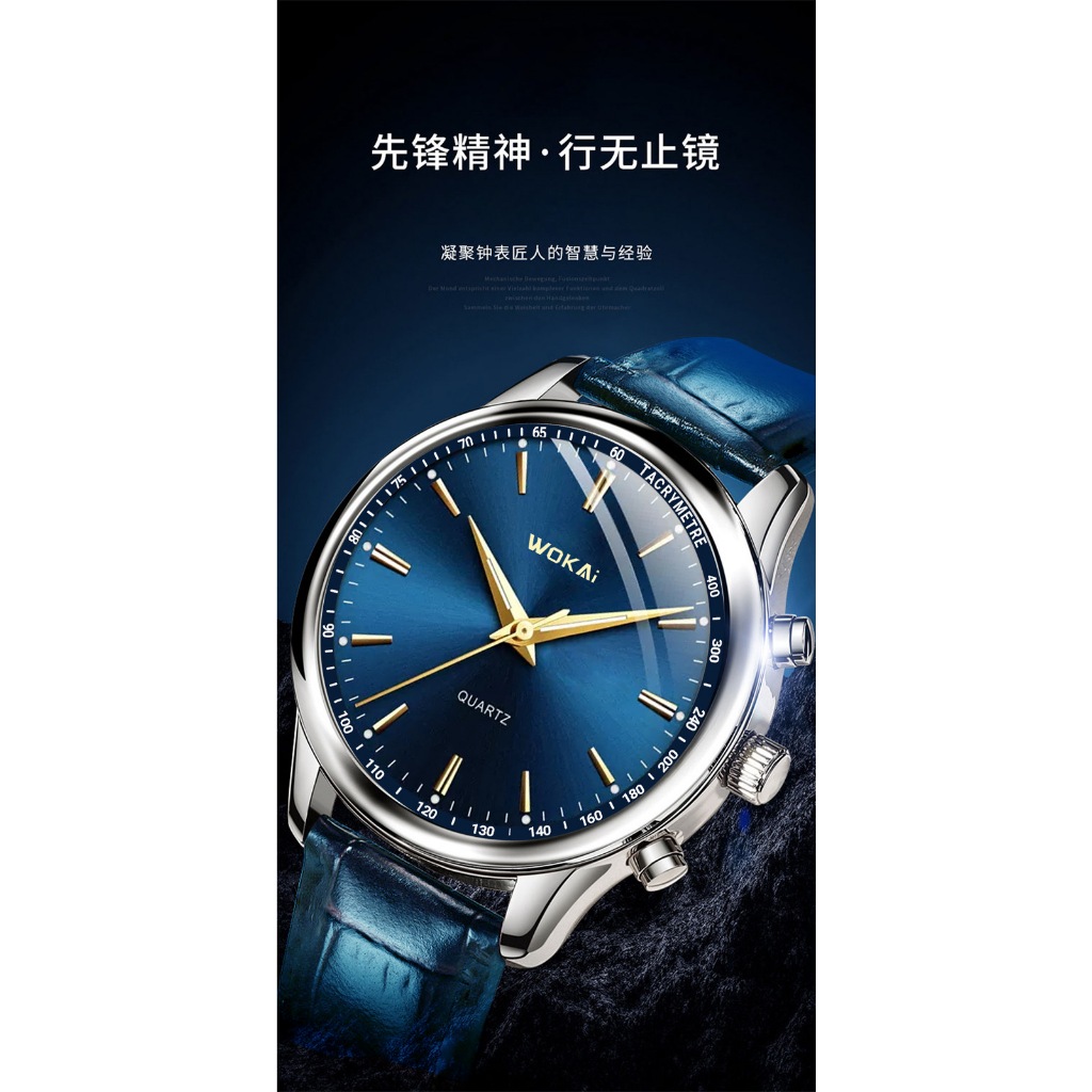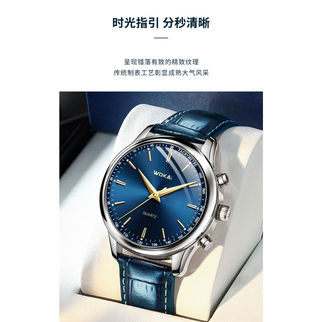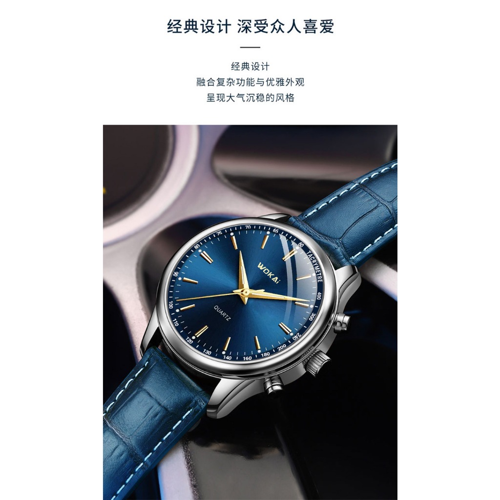 (In stock) New Wakai Watch Men's Blue Watch Casual Sports Leather Strap Quartz Watch Men's