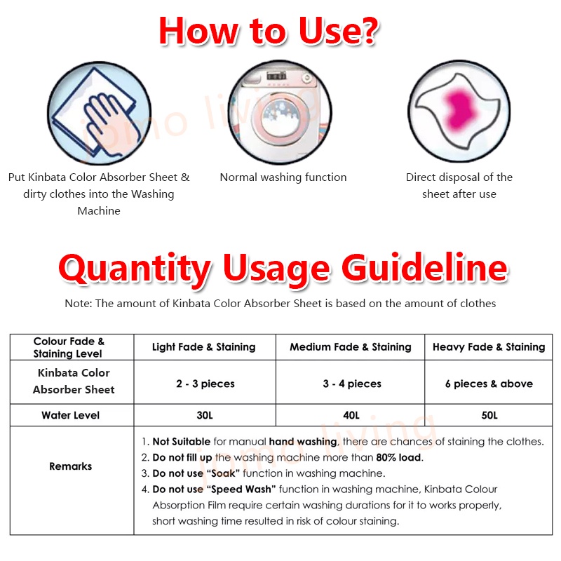 Suitability:good Quality:good Performance:good Have been repeating order Cos my daughter likes to buy either black or white So hv to separate wash But if I use this I don’t hv to separate wash To be safe, for new clothes separate wash before wear and put this inside will not colour run Also note that for bright colors it will become dull after wash together with this This is the 1 downside that I hope can improve