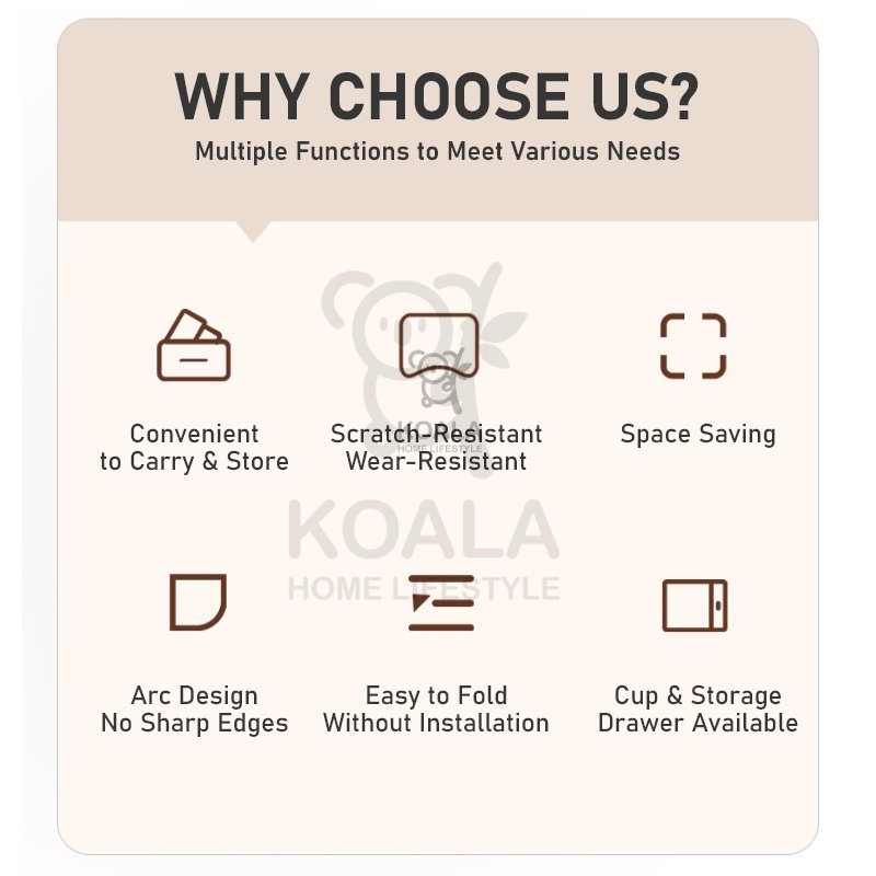 Best Feature(s):perfect Product Quality:good First time purchase and happy with purchase ~ Easy to keep and foldable ~ Small drawer attach, had a cup holder n ipad holder as well~ Love the design