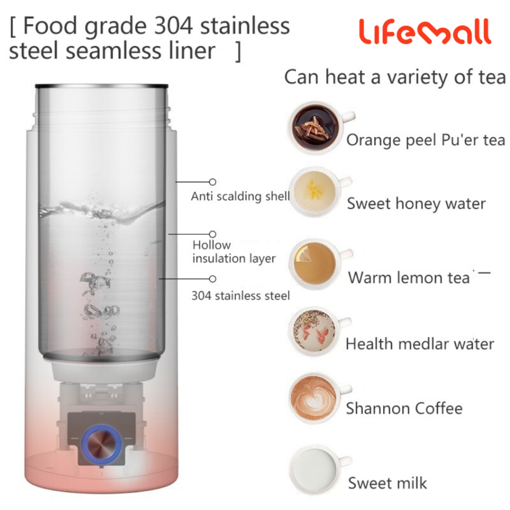 LifeMall- Chirpy 400ml Portable Electric Kettle Travel Kettle Travel Jug Mini Kettle Stainless Steel
