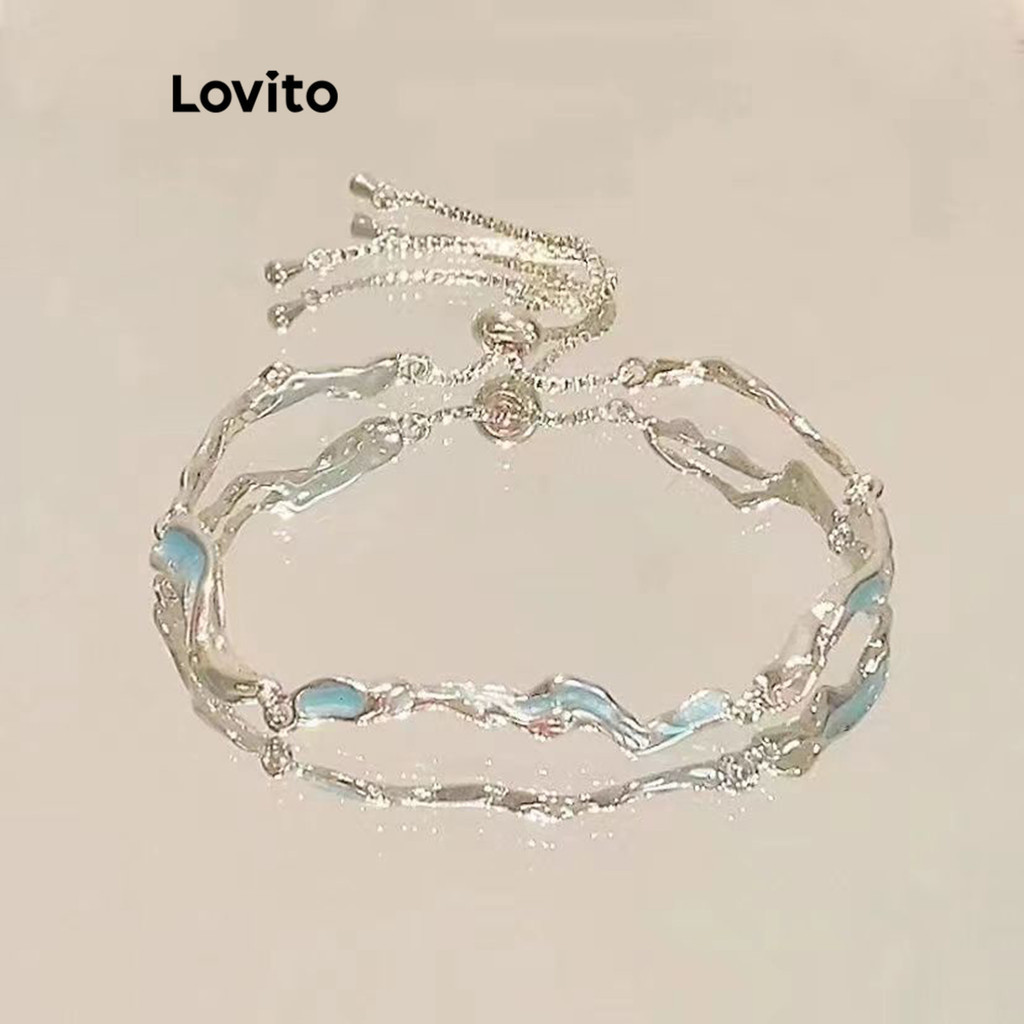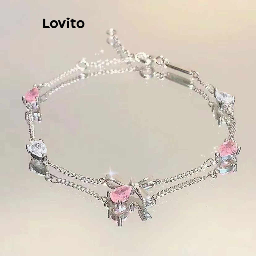 Lovito Romantic Moon Bow Flowers Rhinestone Zircon Cherry Blossoms Bestie Couple Bracelet for Women LFA12539