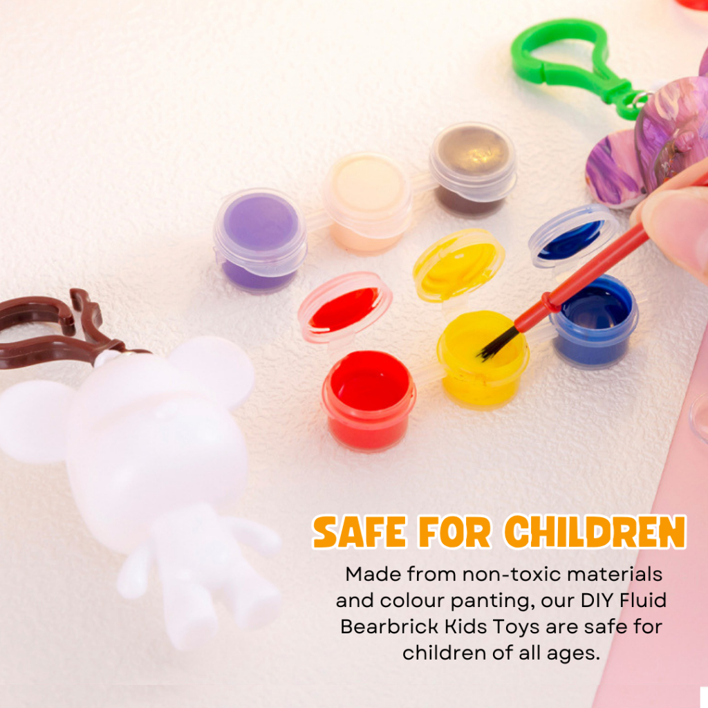 mixshop DIY Fluid Bearbrick Keychain Set Party Gift Children Toys (6 Colors of Painting Set)