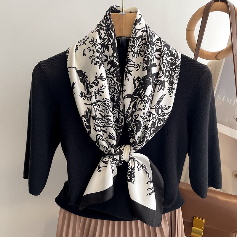 New Design Fashion Design Decoration Hijab Women Floral Printed 90cm Square Twill Scarf