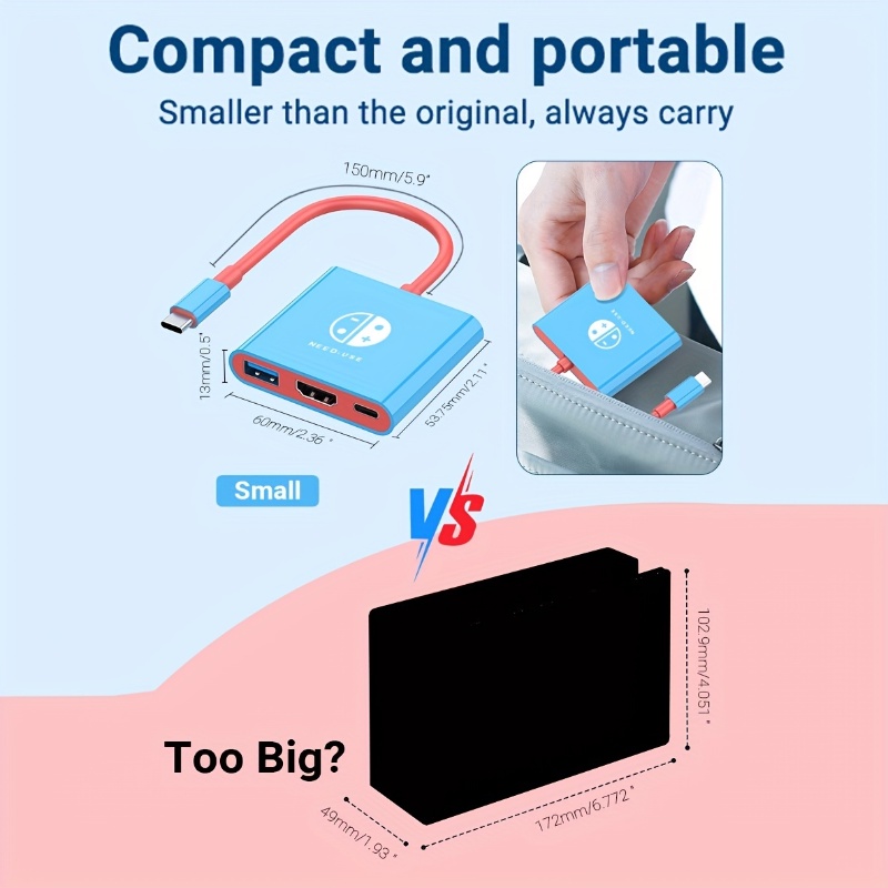 PD100W Docking Station For Nintendo Switch,Portable Switch Dock Replacement For Nintendo Switch Dock Switch HDMI Adapter USB 3.0 Switch TV Dock,for Nintendo Switch Travel Dock,for