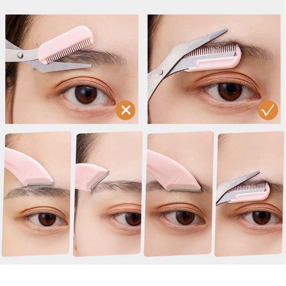 Professional Eyebrow Trimming Kit with Scissors and Razor Blades | Pink and White Grooming Set | Beauty Tools | Onestop Shopping | Ready Stock | 715 Days Delivery