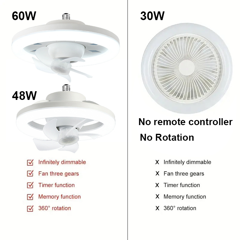 Best Feature(s):light weight, screw in, rotating fan Value For Money:yes Performance:good Fast delivery. Everything about this product is good. Lightweight, 3-in-1 remote control for light and fan n switch on/off. Came with extension ceiling cord. Easy installation, just screw in fan if not using the extension. Recommend seller and product