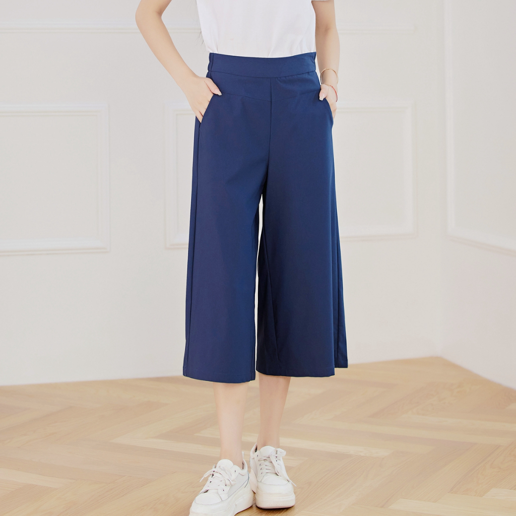 Silverworld 10123 Ladies wide leg pants High waist women casual pants culottes 3/4 length