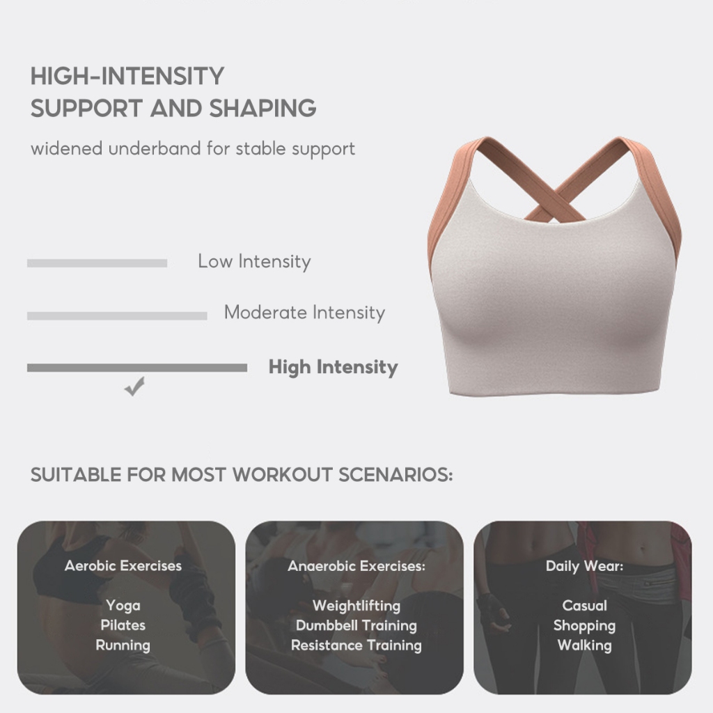 Sports Bra High Support Fixed Padding With Adjustable Back Buckle SG Stock