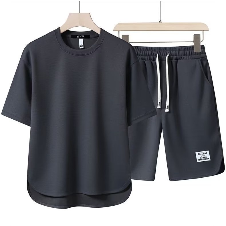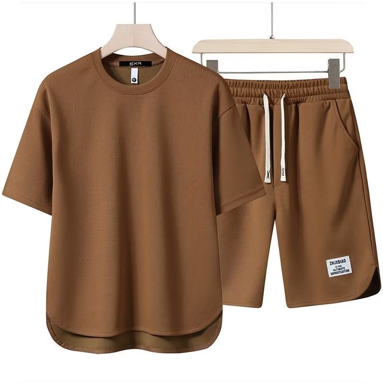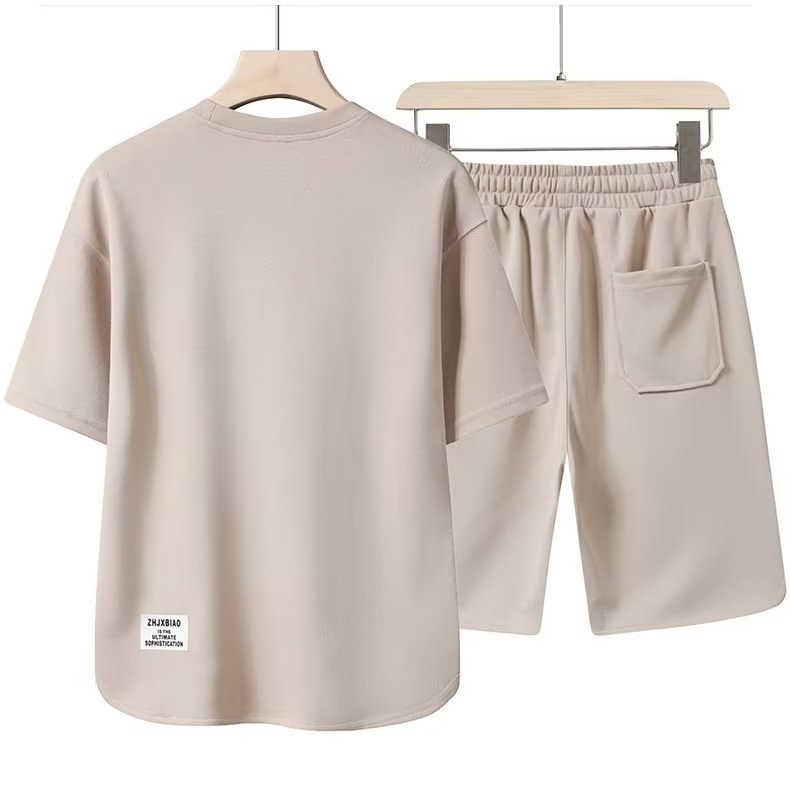 Summer New Waffle Plain T-shirt and Shorts Quick Dry Loose Comfort Sports Home Suit One Set Men Outfit Women Beige Coffee Black White Grey Red Green