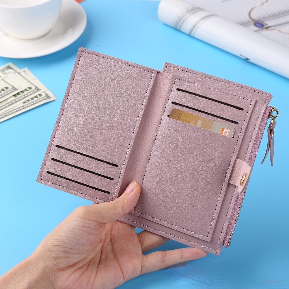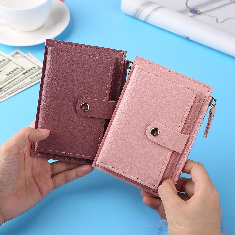 Women's Mini Plain Color PU Leather Wallet With Multiple Spaces